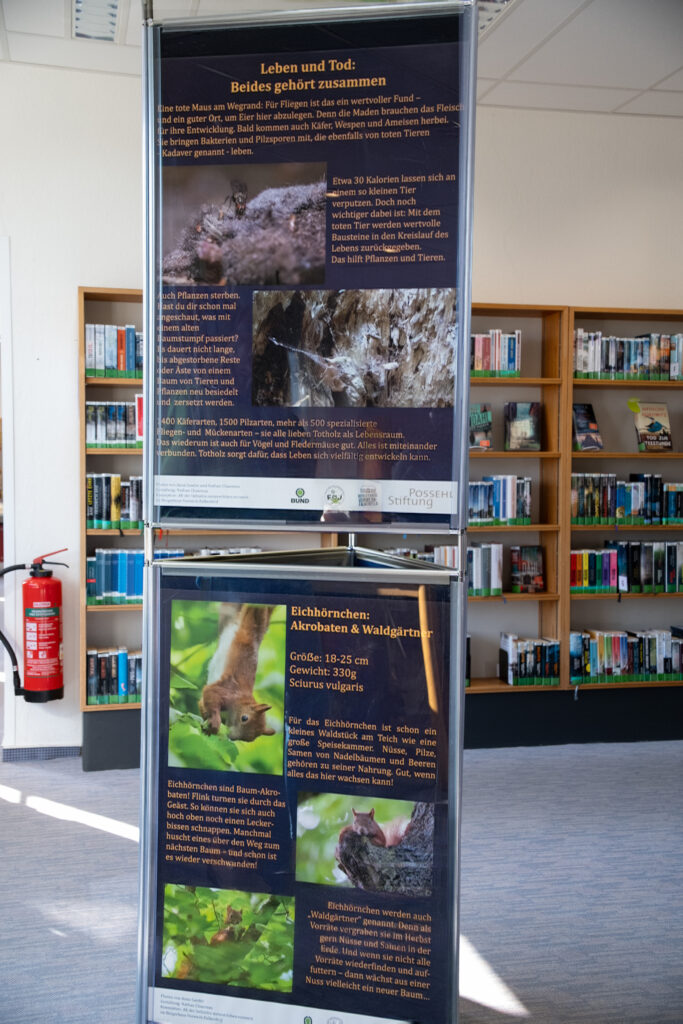 „Alles in Bewegung. Natur & Nahrung rund um den Tremser Teich“ – so lautet der Titel einer Ausstellung, die am Freitag in der Gemeindebücherei Stockelsdorf eröffnet wurde. Mit Naturfotografien der Naturfotografin Anna Sander (vorn im Bild), auf Tafeln gestaltet von FÖJi Nathan Chauveau (am Fenster) in Zusammenarbeit mit der Initiative natur.erleben.vorwerk des Bürgerhauses Vorwerk-Falkenfeld freuten sich die Besucher und Beteiligten über die erste Gelegenheit, an diesem gastfreundlichen öffentlichen Ort die Ausstellung zu präsentieren.